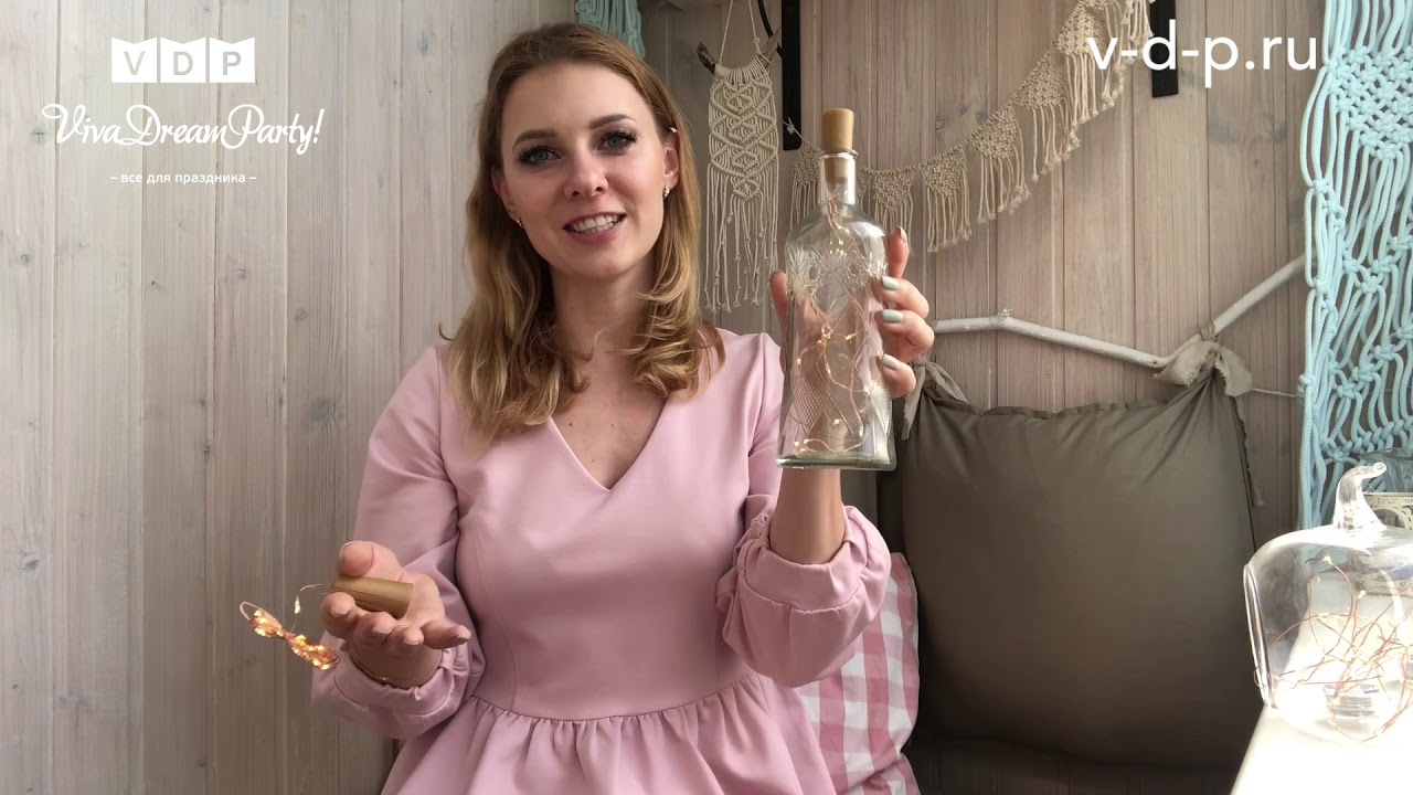 1. Светящаяся нить на батарейках используется в местах, где нет возможности подключиться сети. Такую ленту применяют для украшения фотозоны на природе, свадебного стола, праздничного помещения, кафе. Гирлянды с небольшим блоком для мини-батареек используются в декорировании небольших предметов (букетов, бокалов, ночника, фонарика, подарочной коробочки). Нить с основанием в виде пробки – идеально подходит для бутылок. Светящиеся прозрачные бутылки служат украшением гостевого стола или ночником в спальне, детской комнате.