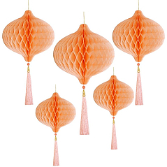 Бумажное украшение Шары-соты с кисточкой НАБОР 5 шт, персиковый Бумажное украшение Шары-соты с кисточкой НАБОР 5 шт, персиковый