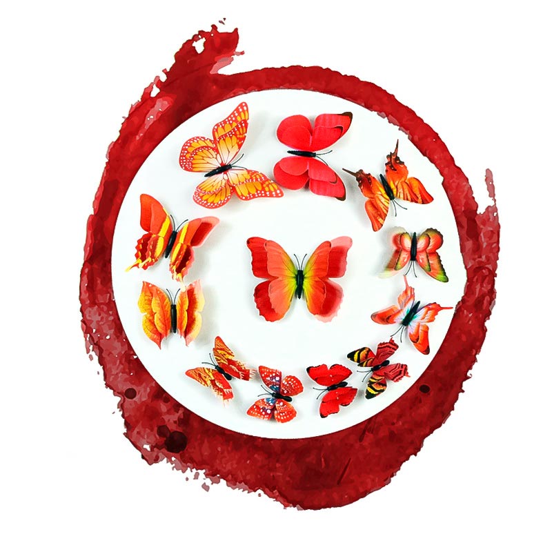 Бабочки на магните двойные пластиковые 12 шт красный с рис.