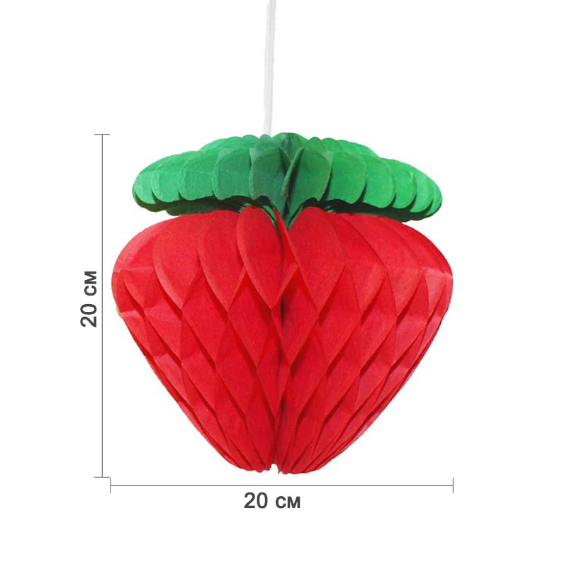 Бумажное украшение "Клубника" 20х20 см, красный — сочный и праздничный элемент для оформления стола, фотозон, витрин и интерьера. Поставляется в сложенном виде, легко раскрывается в пышную объёмную форму.