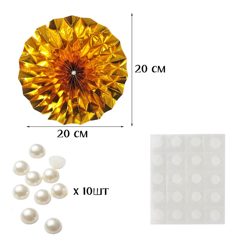 Фанты фольгированные с жемчужиной НАБОР 10шт х 20см, золото