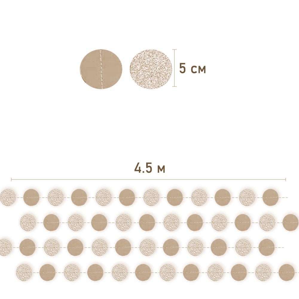 Гирлянда "Кружочки" блеск/металлик 5 см х 4,5 м, Шампань