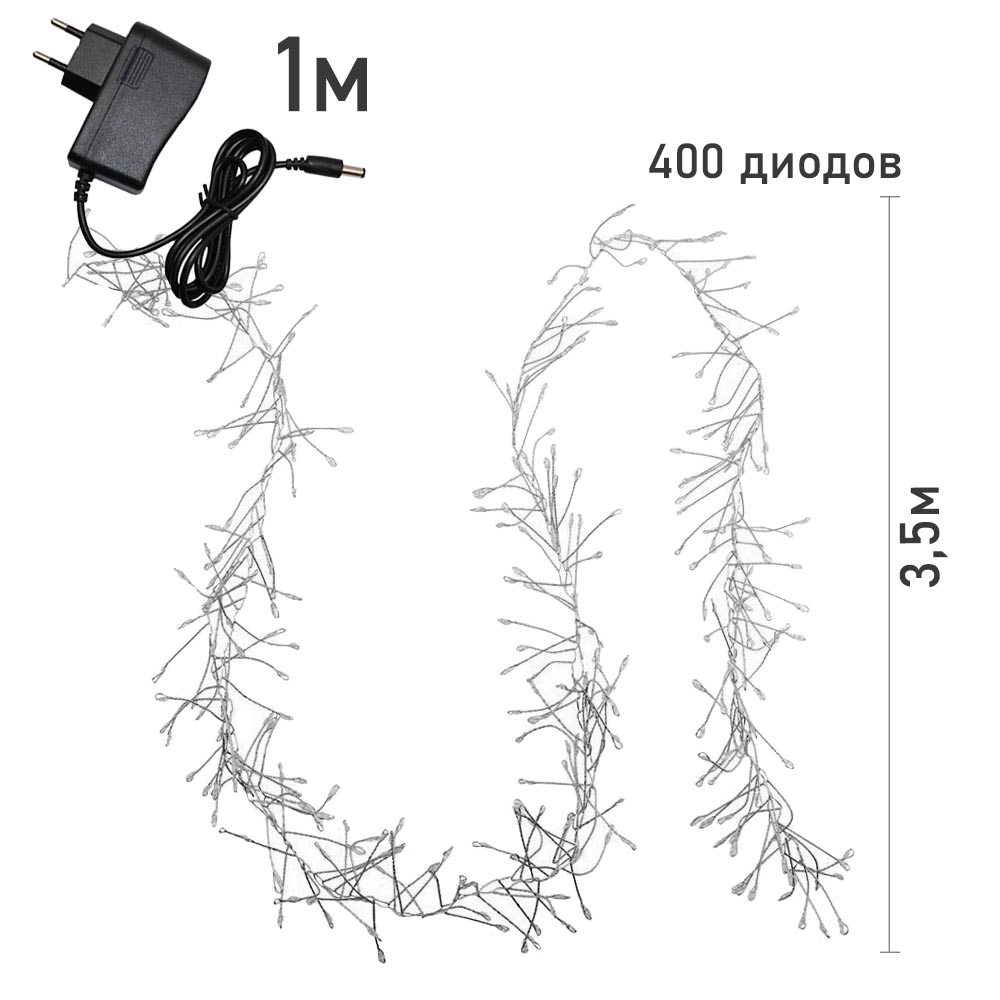 Гирлянда LED Роса-Мишура от сети, 3,5м х 400 диодов, разноцветный