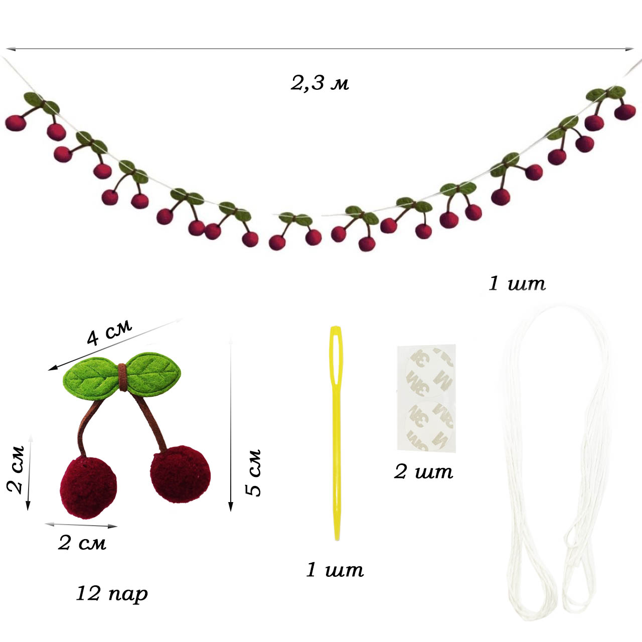 Гирлянда на веревке "Вишенки"  2 см х 24 шт х 2,3 м, "бордовый" - 1 шт.