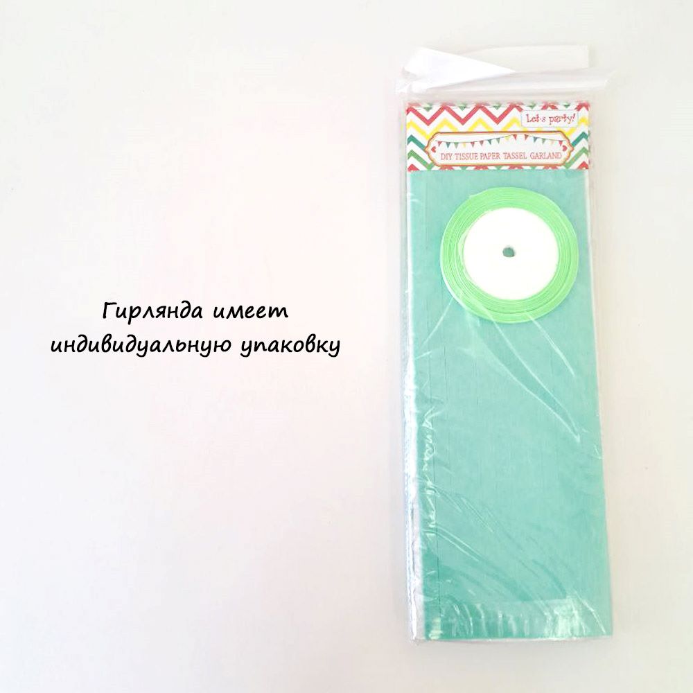 Гирлянда тассел 12 кисточек по 5 листов, мятный