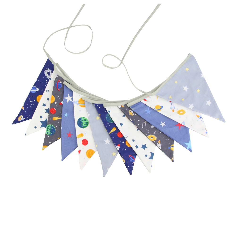 Гирлянда состоит из 12 флажков. Расстояние между флажками - 6 см, общая длина составляет 4 м.