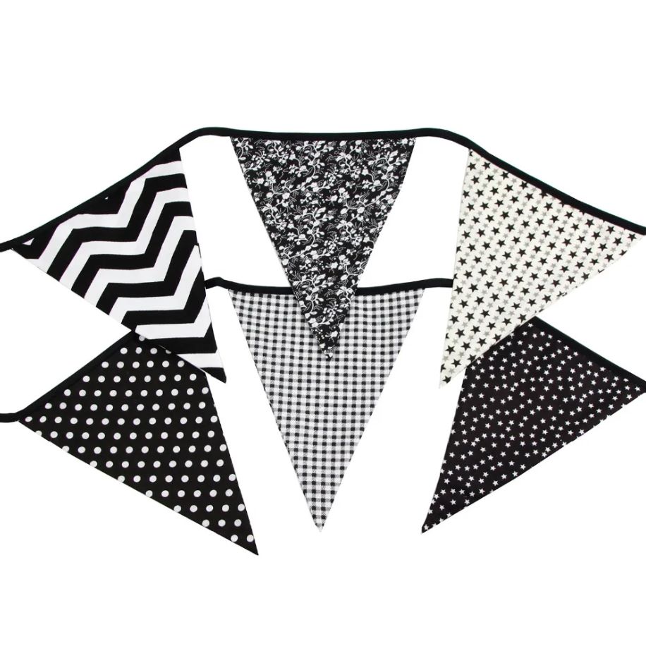 Гирлянда состоит из 12 флажков, расстояние между флажками 6 см, общая длина составляет 4 м.