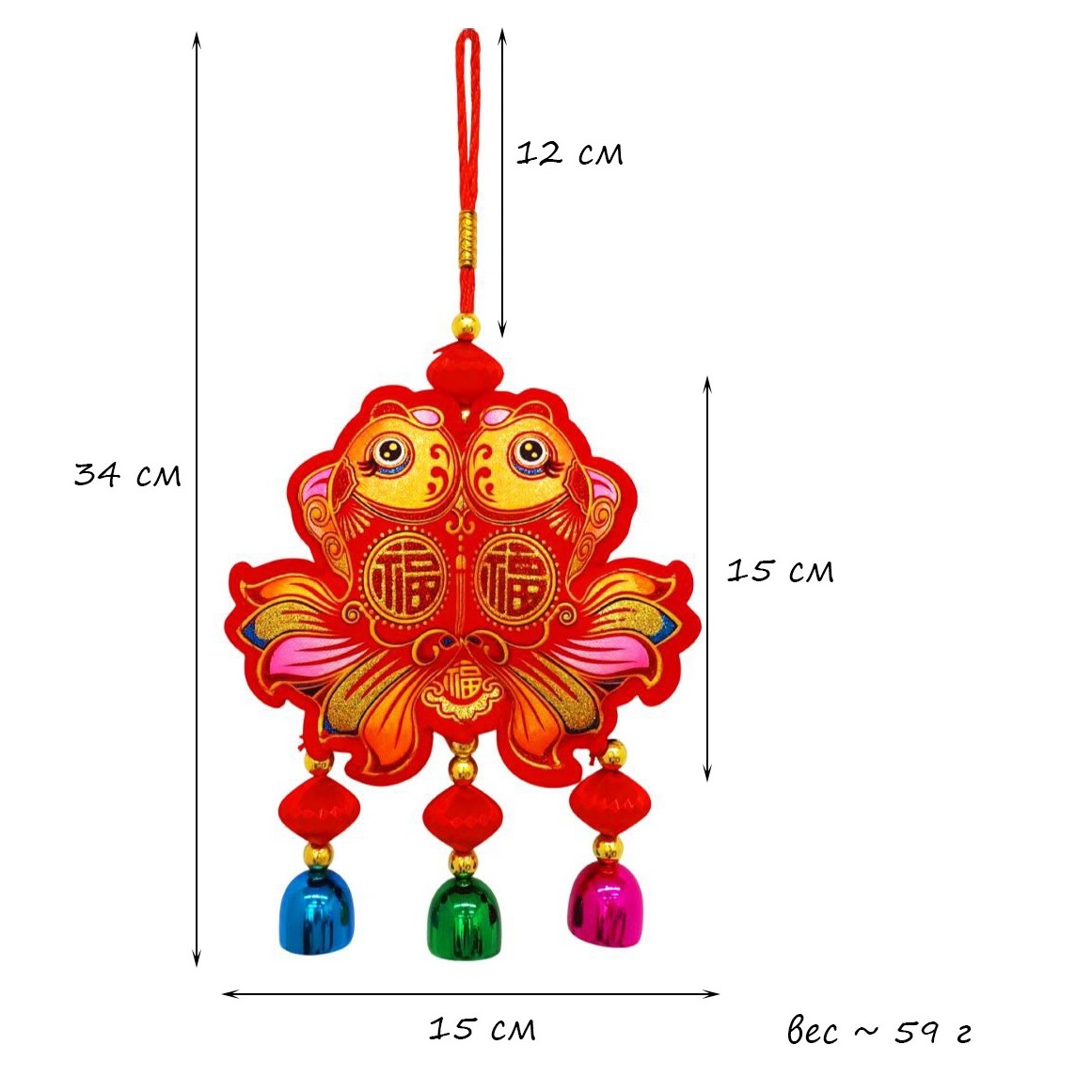 Китайская подвеска с колокольчиками 15х34см, Две Рыбки - 1 шт