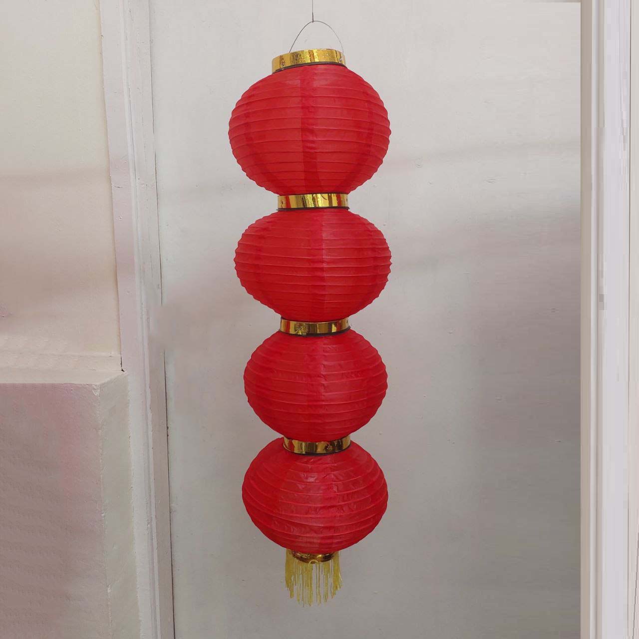Круглый китайский фонарь состоит из четырех ярусов диаметром 25 см каждый.