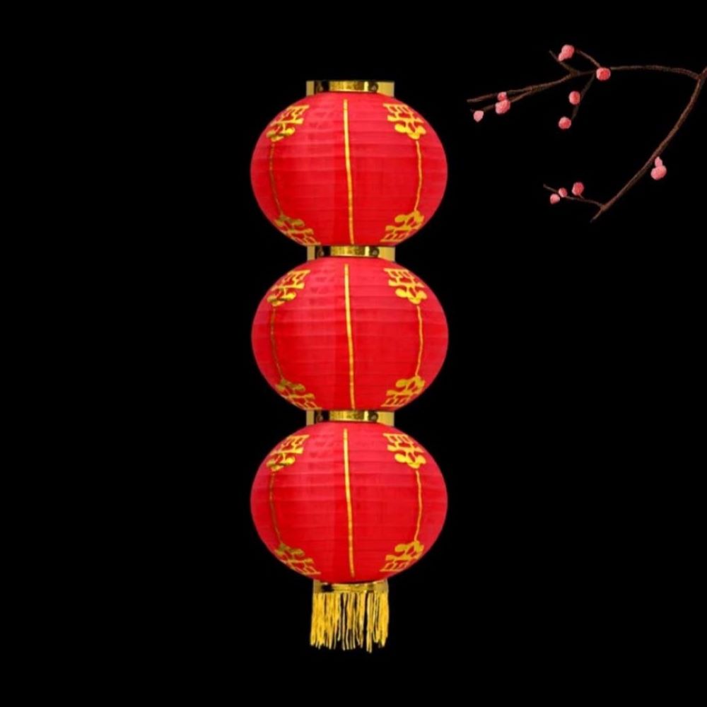Китайский фонарь Круглый с рисунком, 3 яруса 30см