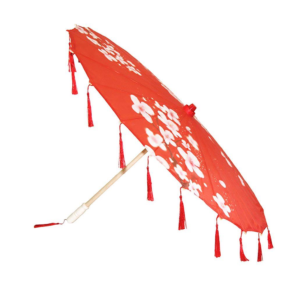 Китайские тканевые зонтики цветочные с кисточками 82х54 см