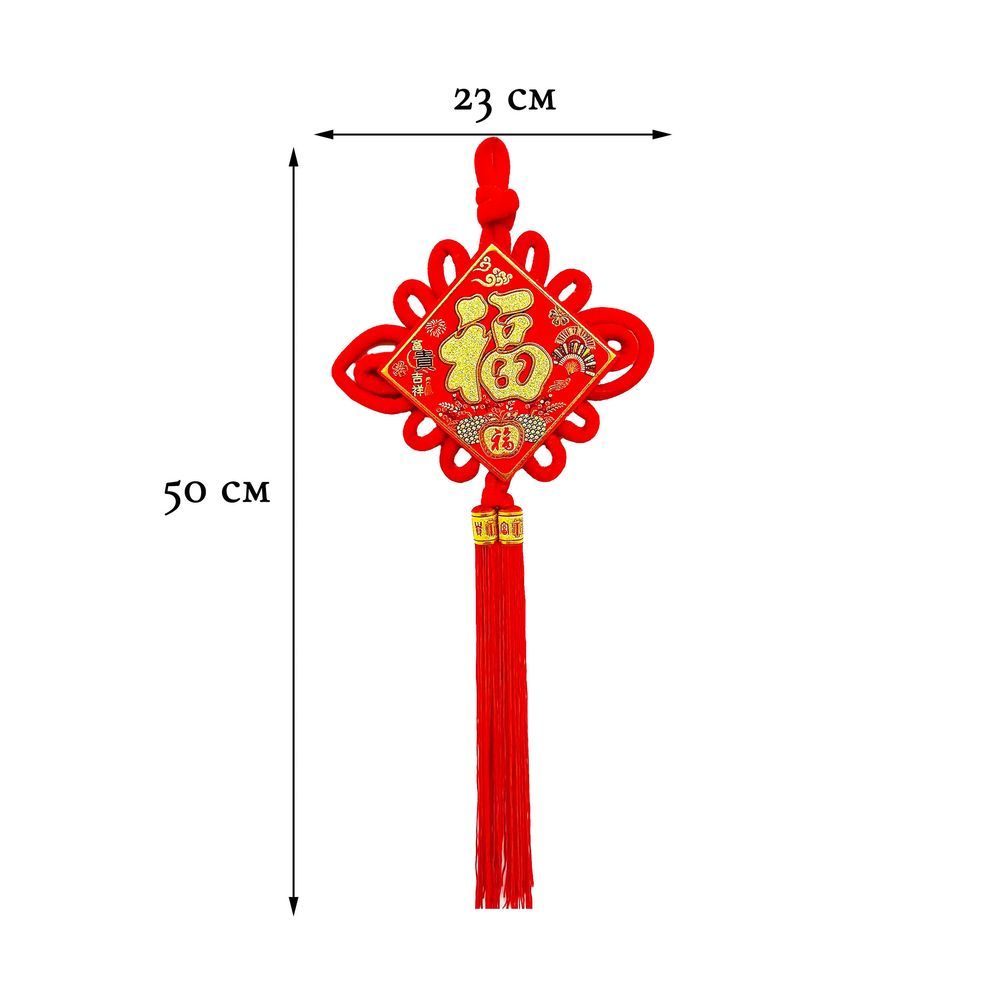 Традиционный китайский узел в форме ромба с символичным дизайном. Яркое сочетание красного бархата и золотых элементов создает эффектный акцент в интерьере.