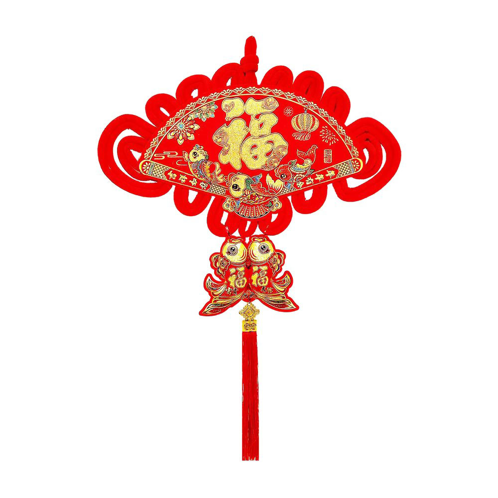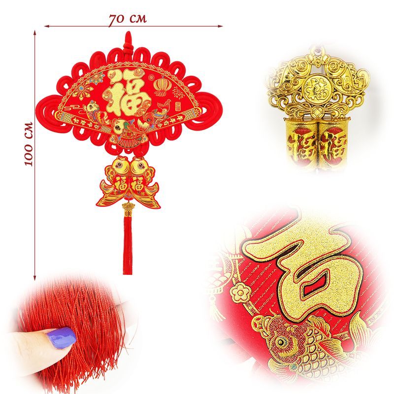 Традиционный китайский узел в форме ромба с символичным дизайном. Яркое сочетание красного бархата и золотых элементов создает эффектный акцент в интерьере.