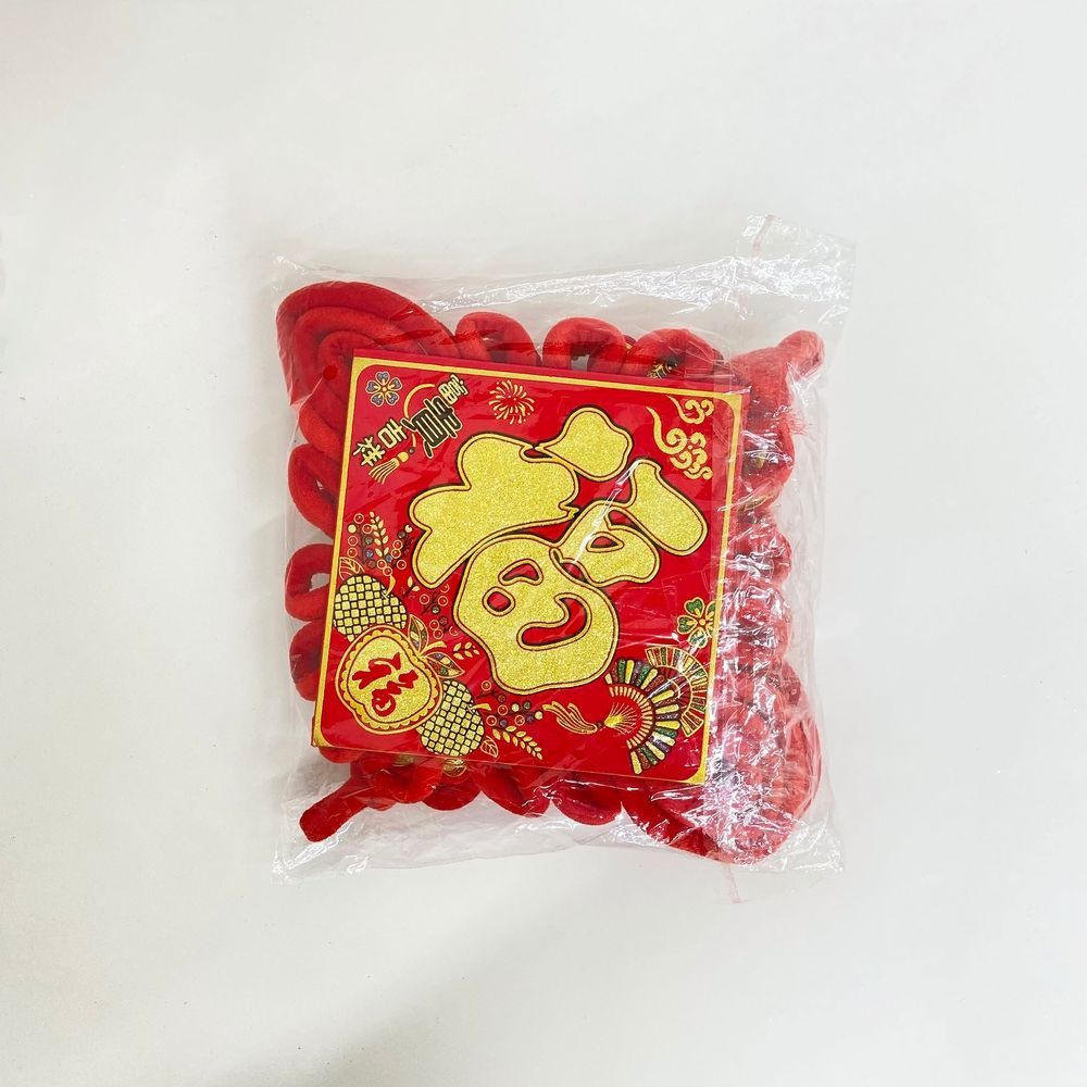 Традиционный китайский узел в форме ромба с символичным дизайном. Яркое сочетание красного бархата и золотых элементов создает эффектный акцент в интерьере.