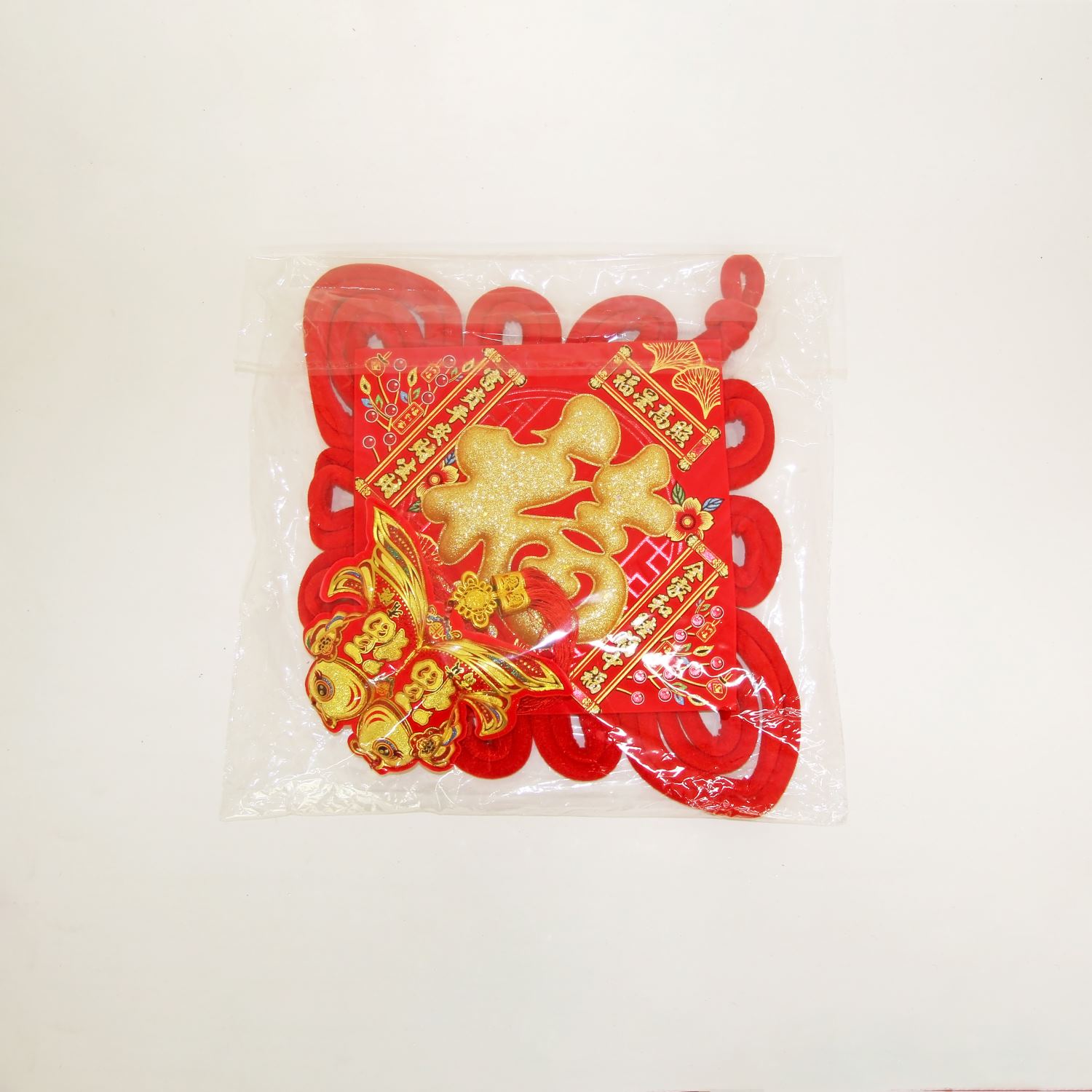 Традиционный китайский узел в форме ромба с символичным дизайном. Яркое сочетание красного бархата и золотых элементов создает эффектный акцент в интерьере.