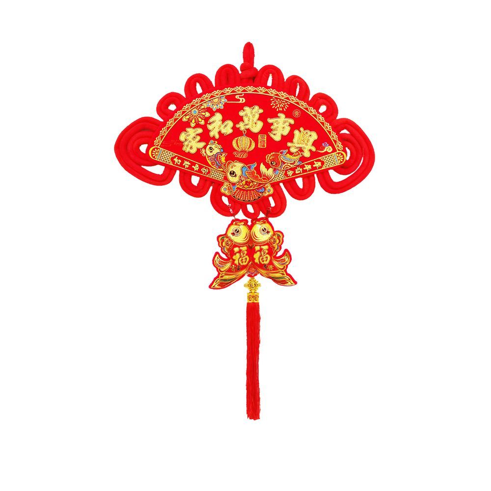 Традиционный китайский узел в форме ромба с символичным дизайном. Яркое сочетание красного бархата и золотых элементов создает эффектный акцент в интерьере.