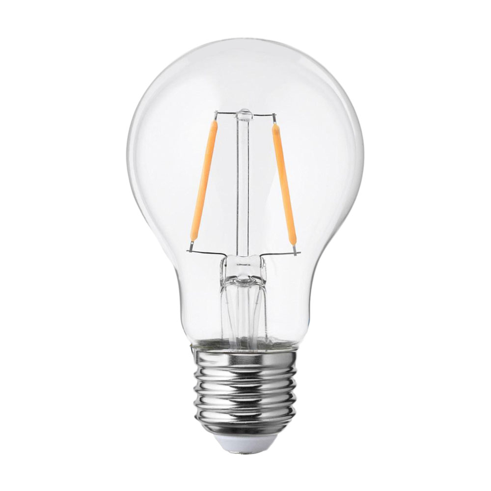 Лампа светодиодная A60 E27 W2 – отличный выбор для гирлянд и декоративного освещения. Свет теплотой 2700 K. Преимущество таких ламп очевидно – потребление электроэнергии у них в 8 раз меньше, чем у классических ламп накаливания. Заявленный срок службы составляет не менее 25 тысяч часов. Класс энергоэффективности A++.