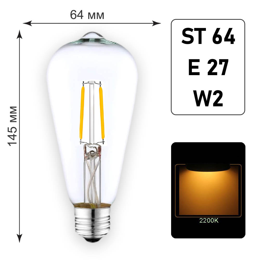 Лампа светодиодная ST64 со стандартом патрона E27 W2 и тёплым свечением 2200К. Световой поток (lm): 360 – этого вполне хватит для создания уютной атмосферы. Высокие показатели энергосбережения и низкое потребление электричества – мощность 4Вт. Гарантировано длительный срок службы – свыше 25 тысяч часов.