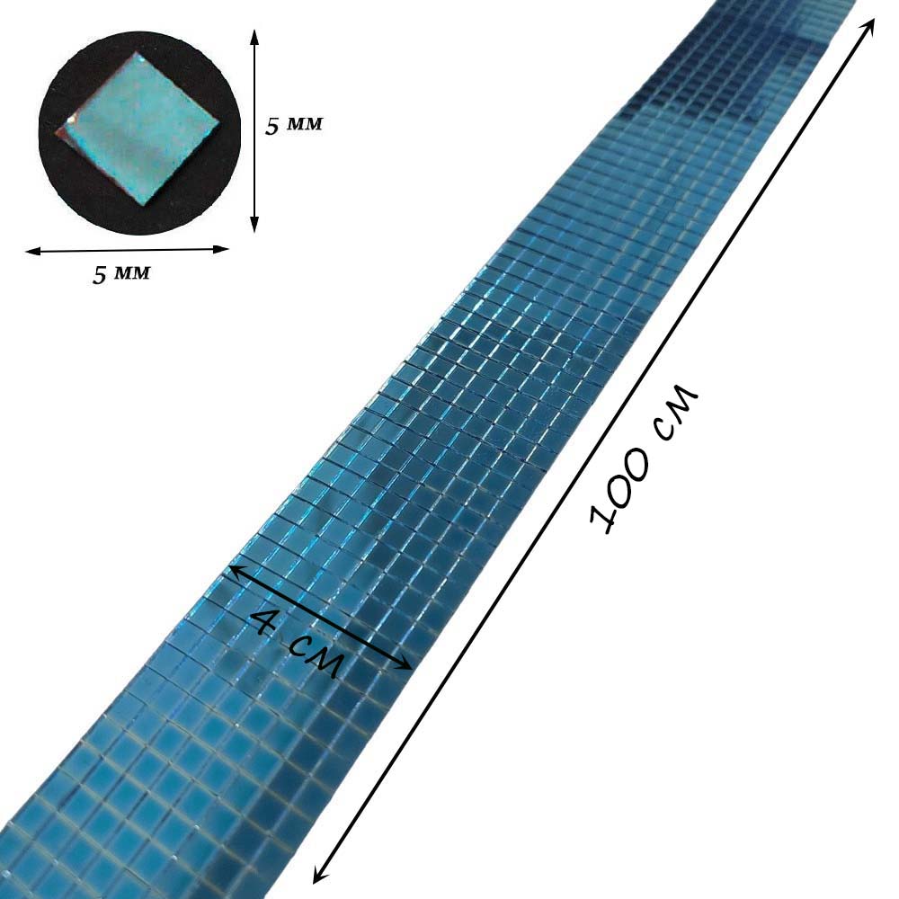 Лента самоклеящаяся зеркальная мозаика стекло, 4см х 1м 5х5мм, синий