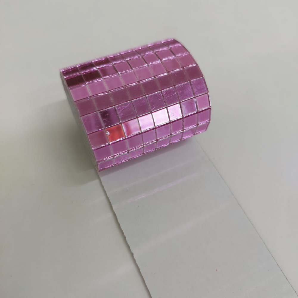 Лента самоклеящаяся зеркальная мозаика стекло, 4см х 1м 5х5мм, светло-розовый
