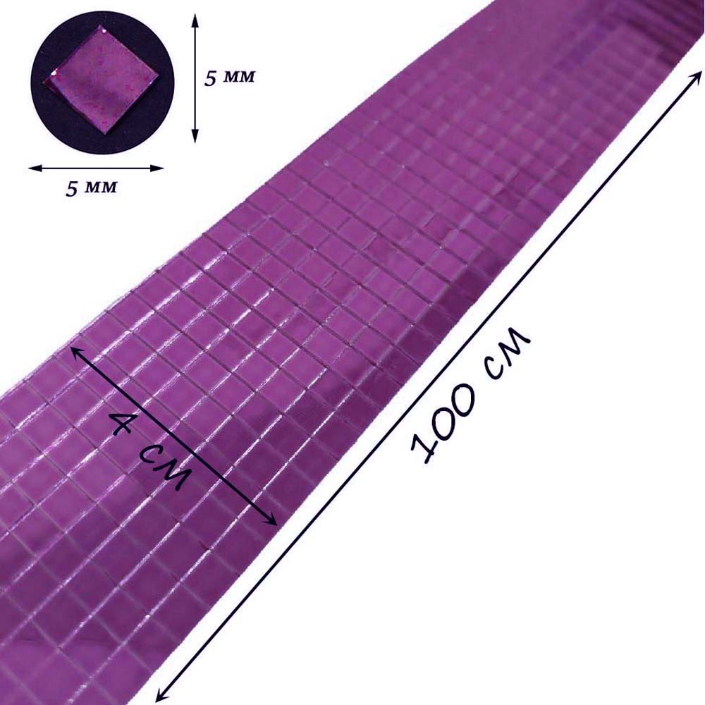 Лента самоклеящаяся зеркальная мозаика стекло, 4см х 1м 5х5мм, фиолетовый