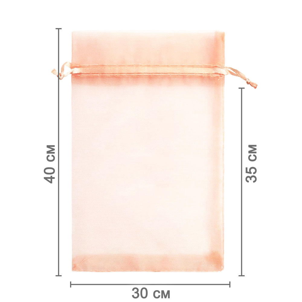 Мешочек из органзы 30 х 40 см — практичный аксессуар для упаковки крупных подарков и хранения предметов. Полупрозрачная ткань подчёркивает содержимое и придаёт праздничный вид.