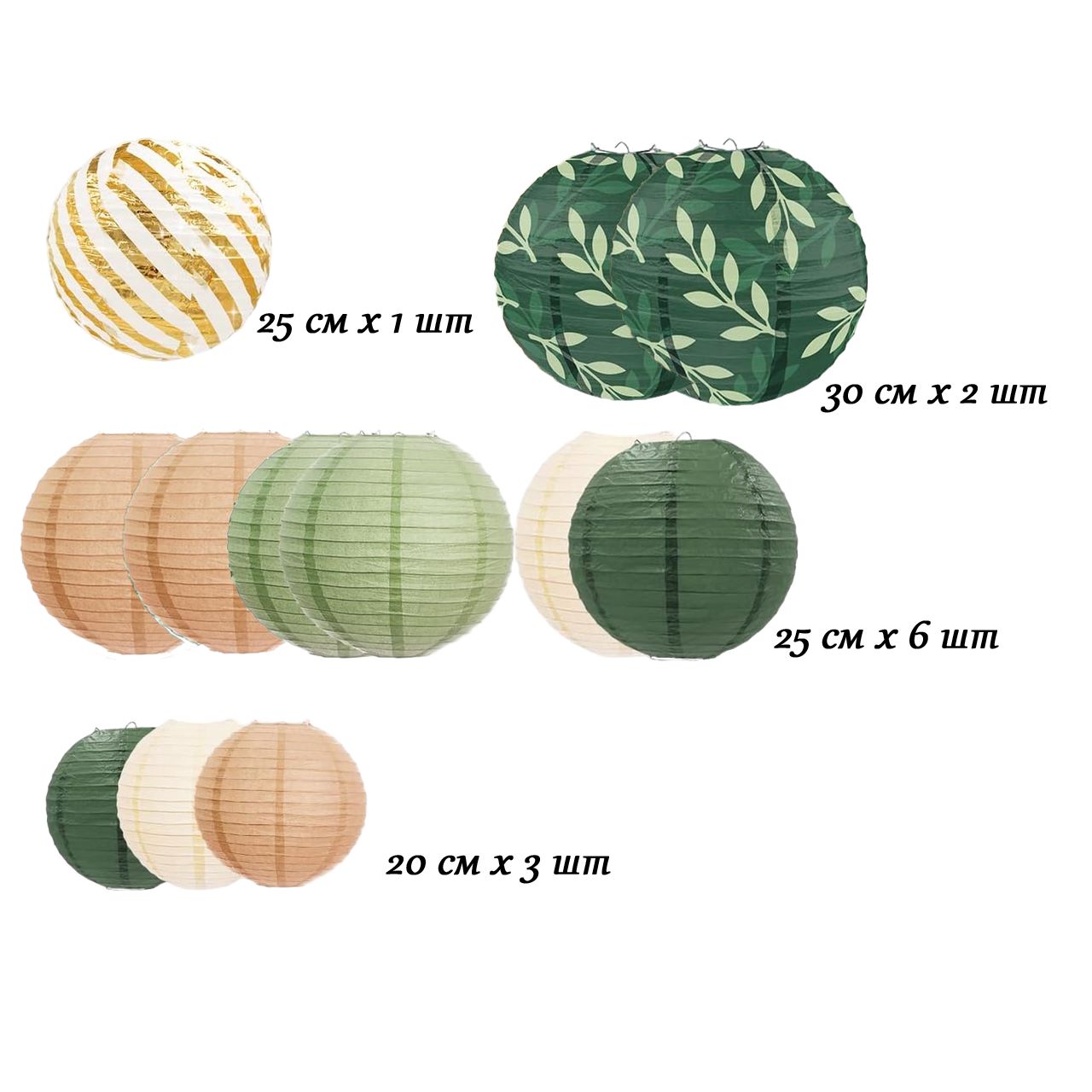 Набор подвесные фонарики 12 шт, зеленый микс