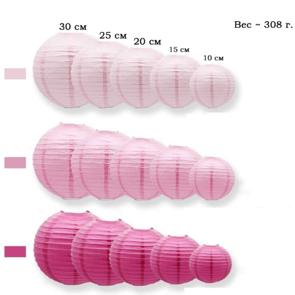 Набор подвесные фонарики 15 шт св.розовый+розовый+малиновый