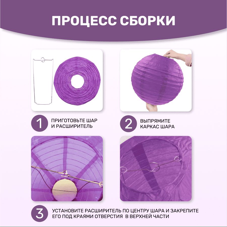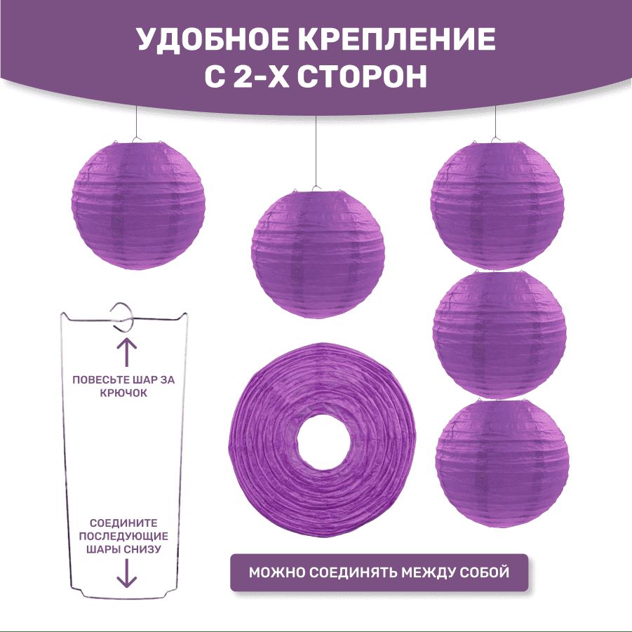 Комплект подвесные фонарики 30 см х 8 шт, сиреневый