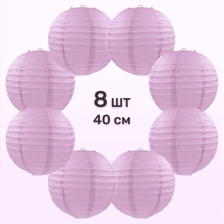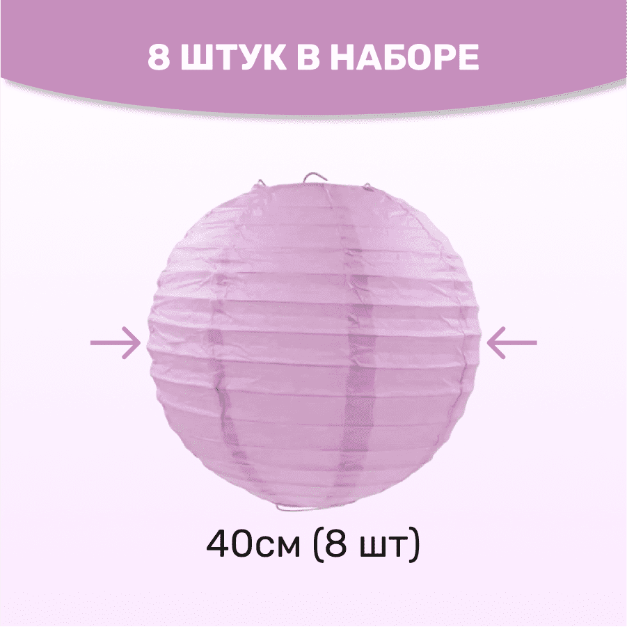 Комплект подвесные фонарики 40 см х 8 шт, светло-сиреневый