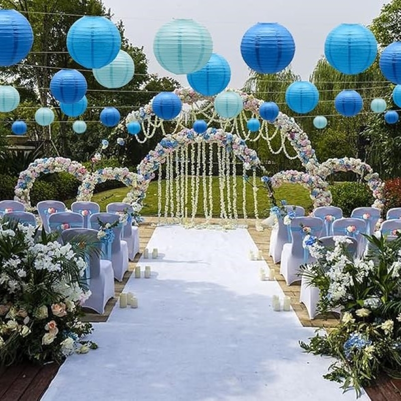 Набор подвесные фонарики 9 шт, голубой+синий+т.синий
