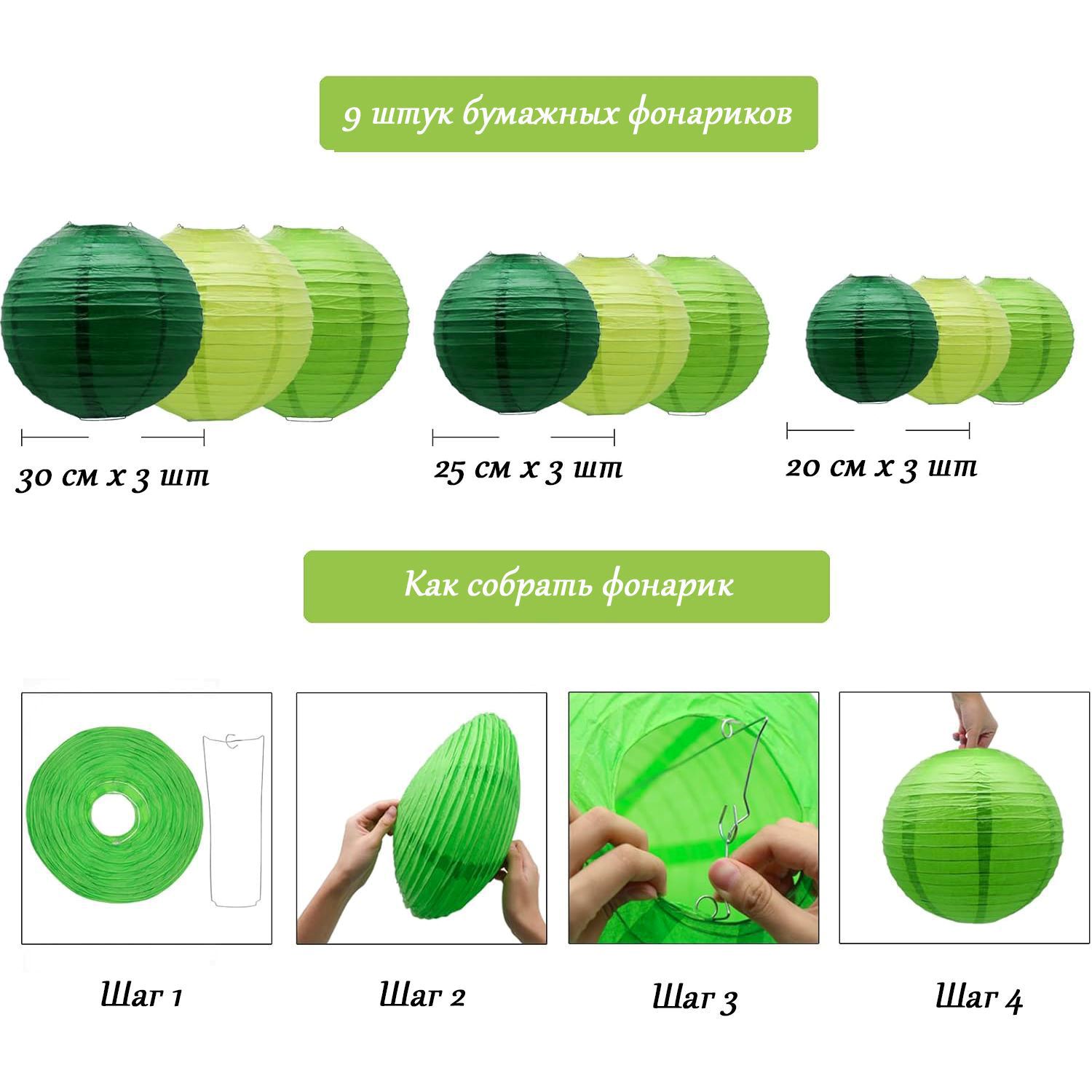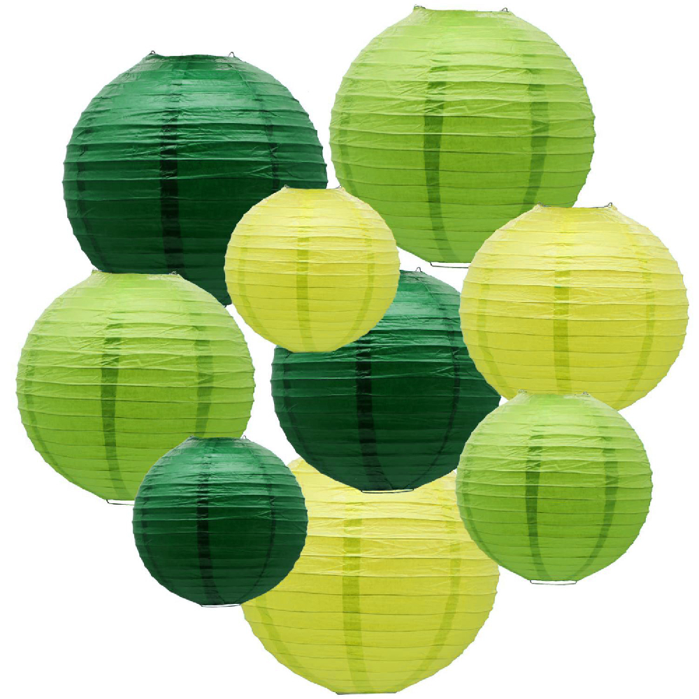 Набор подвесные фонарики 9 шт, салатовый+зеленый+т.зеленый
