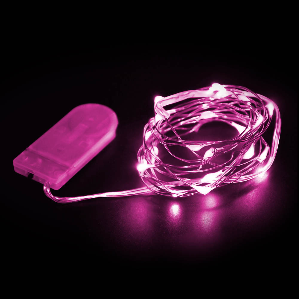 Нить "Роса" серебро, 3 м х 30 диодов, от батареек, розовый
