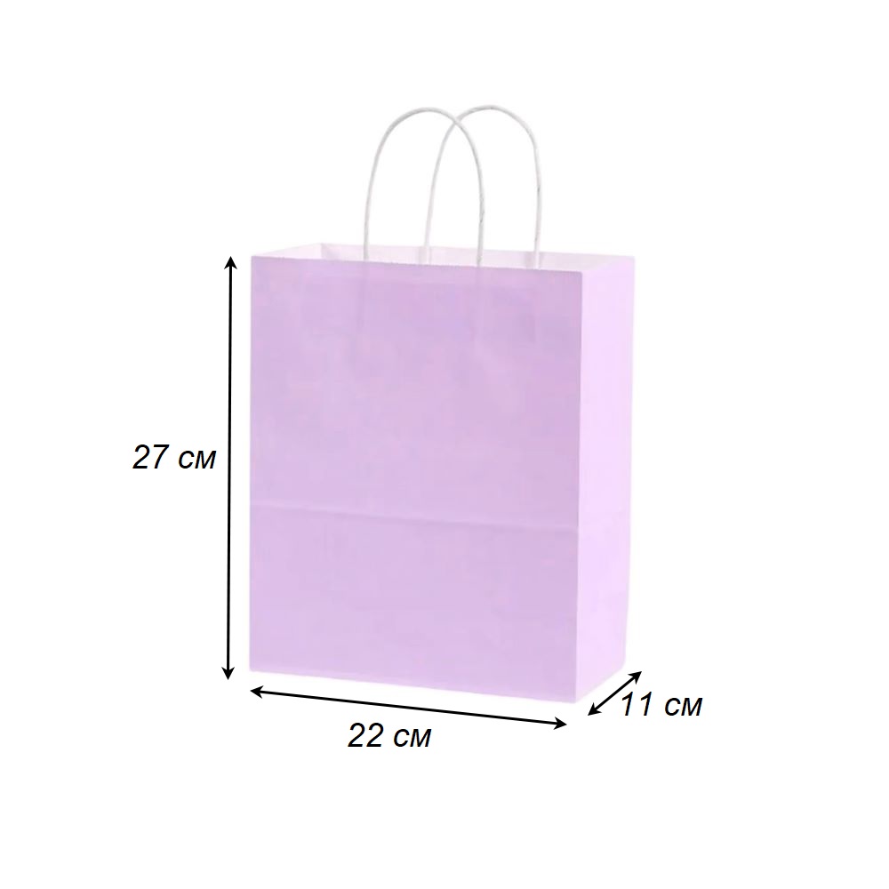 Подарочный пакет из крафтовой бумаги пастельного оттенка с белыми бумажными ручками и белой внутренней стороной.