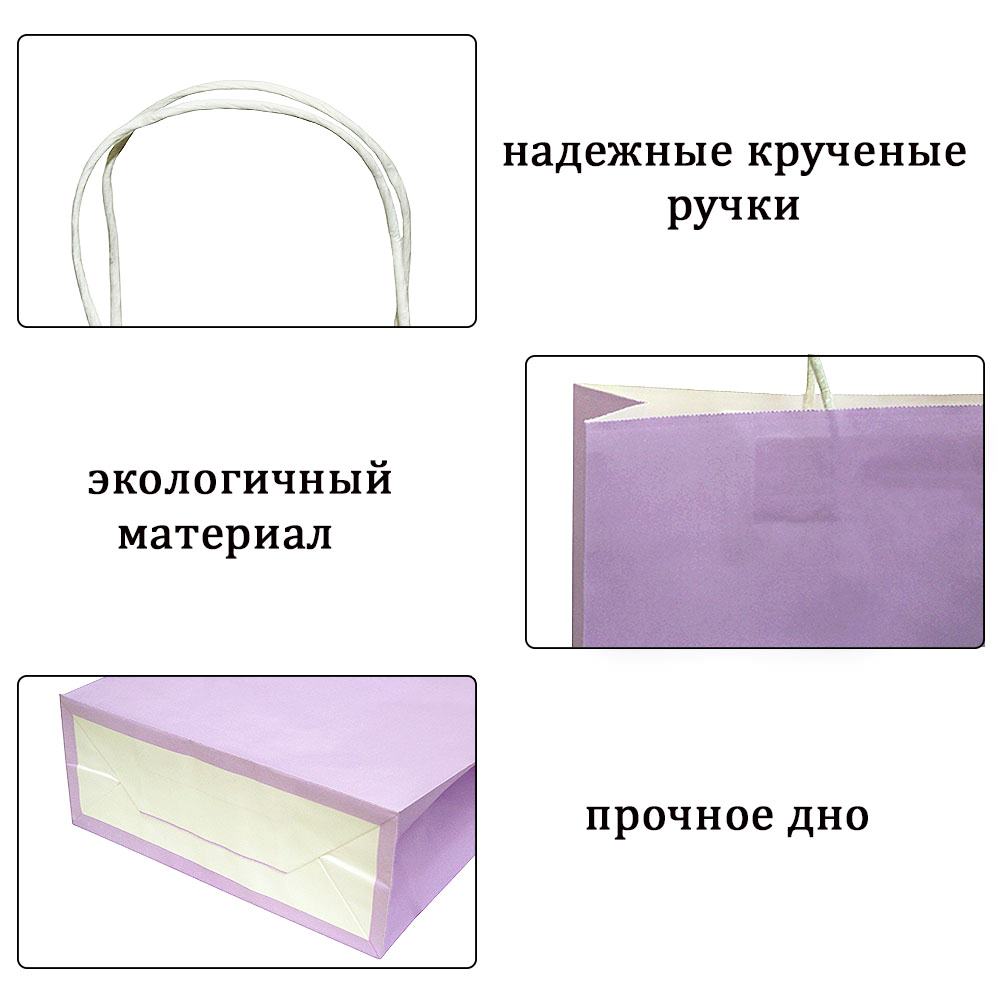 Подарочный пакет из крафтовой бумаги пастельного оттенка с белыми бумажными ручками и белой внутренней стороной.