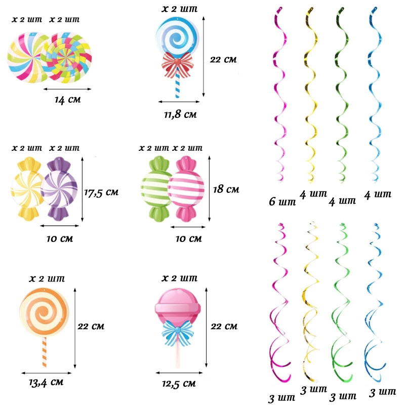 Подвески спираль Леденцы  могут быть использованы для украшения праздника, фотозоны и других мероприятий.
