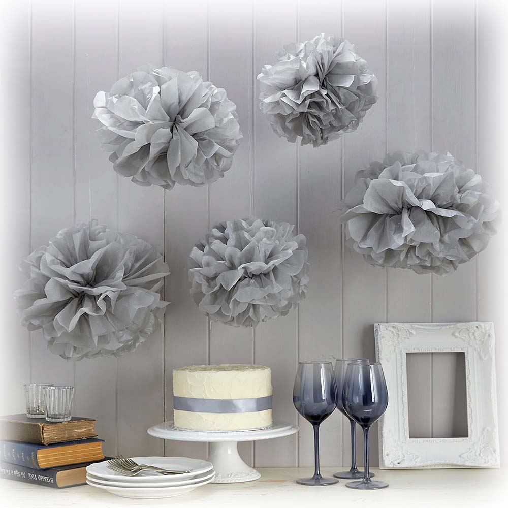 Серебряный бумажный помпон диаметром 20 см — стильное и лёгкое украшение для праздников, фотозон, витрин и интерьера. Отлично подойдёт для дней рождений, свадеб, вечеринок и тематических мероприятий.