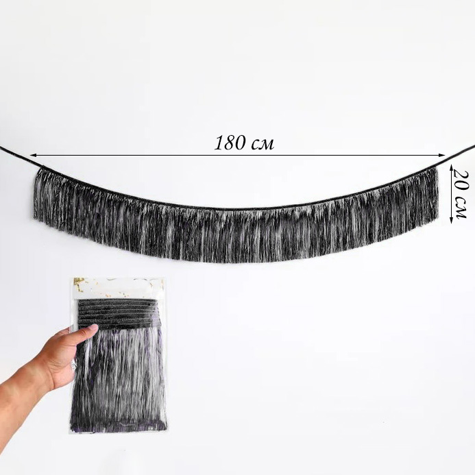 Растяжка бахрома 20см х 1,8м, металлик черный
