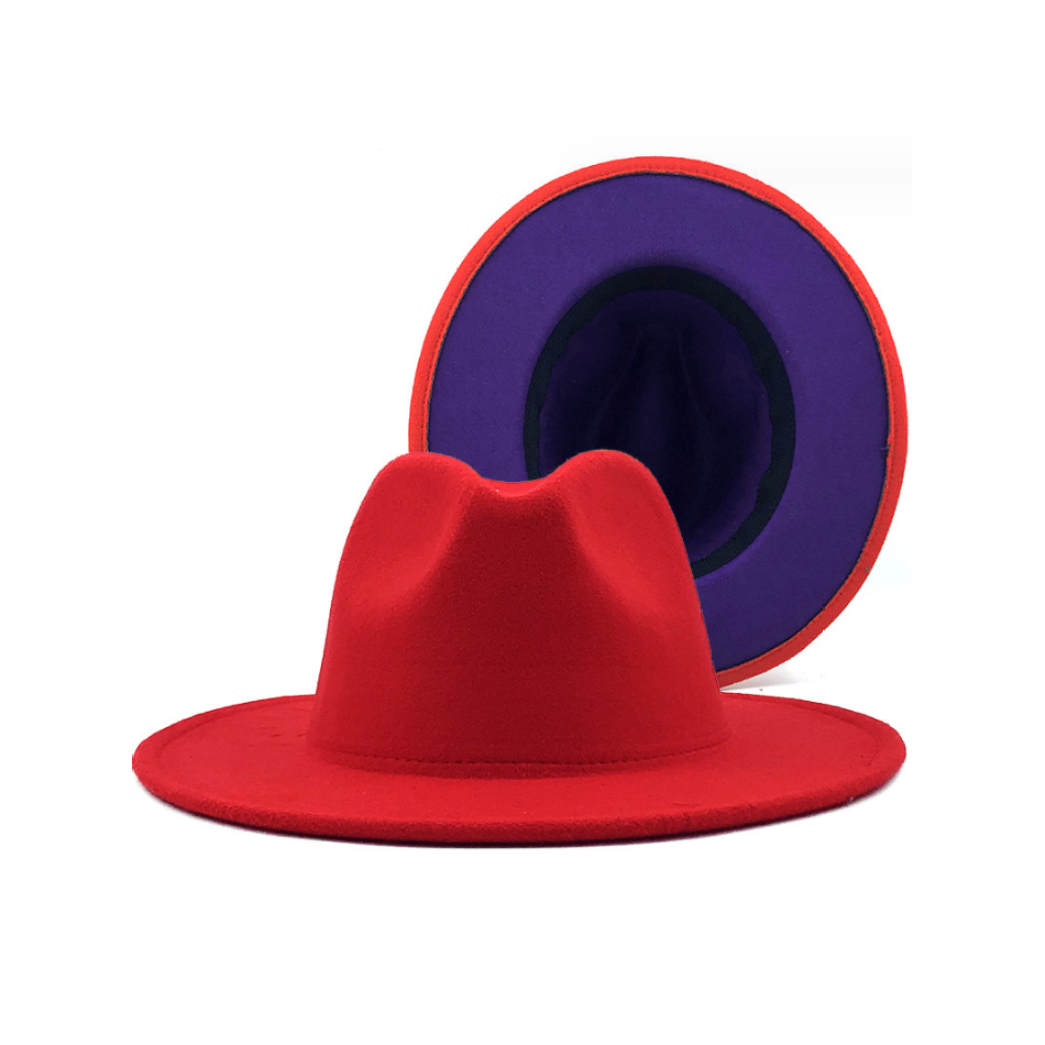 Шляпа Федора фетровая 2 цвета, красный+фиолетовый