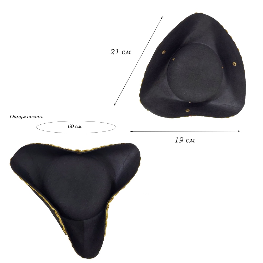 Шляпа Пирата треуголка на кнопке №1, черный