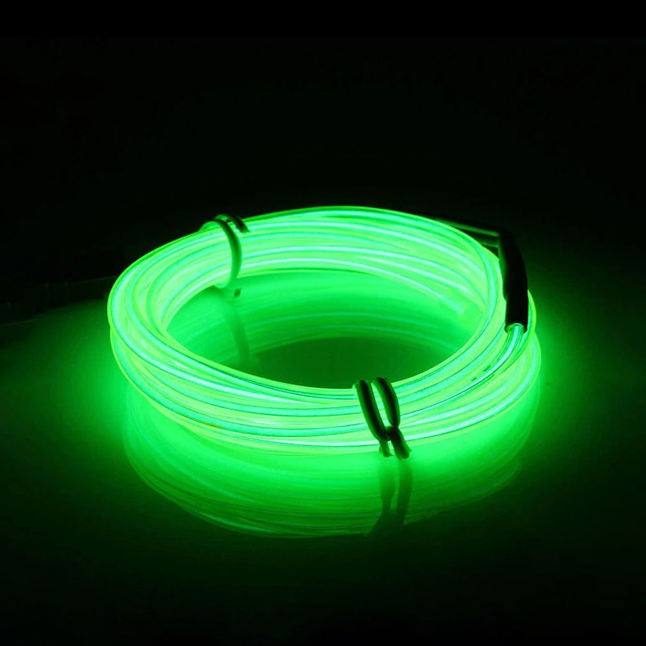 Шнур неоновый светящийся. Можно применять для праздничного украшения интерьера, а также для декора танцевальных костюмов, новогодней елки, подарков, игрушек.
