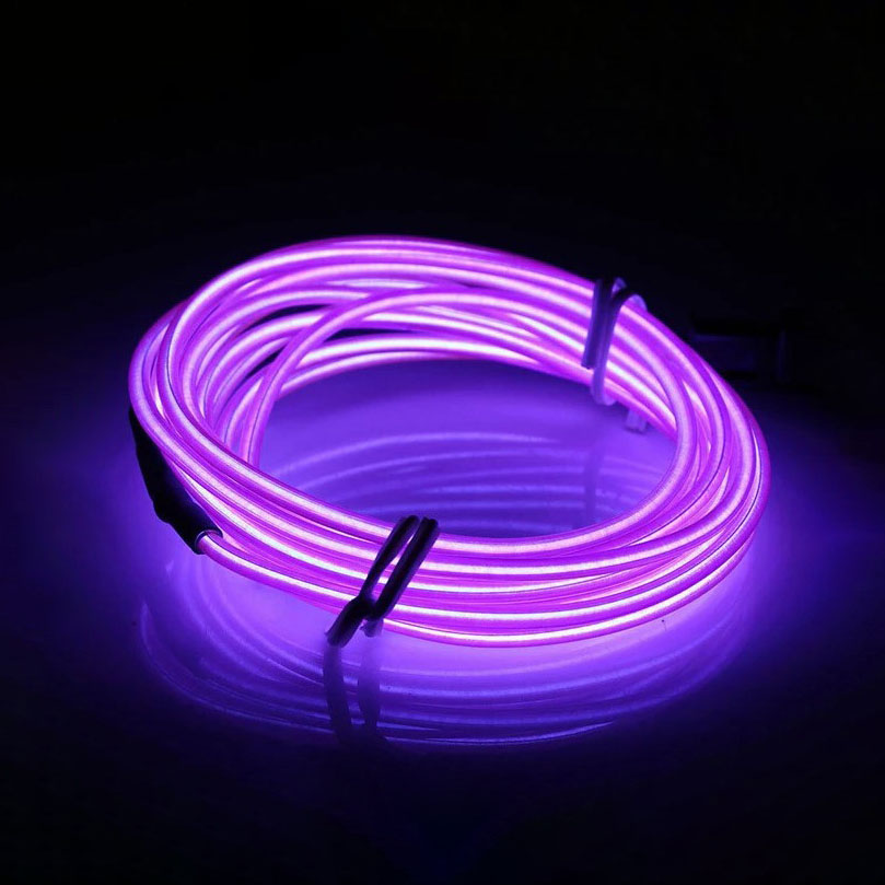 Шнур неоновый светящийся, фиолетовый. Можно применять для праздничного украшения интерьера, а также для декора танцевальных костюмов, новогодней елки, подарков, игрушек.