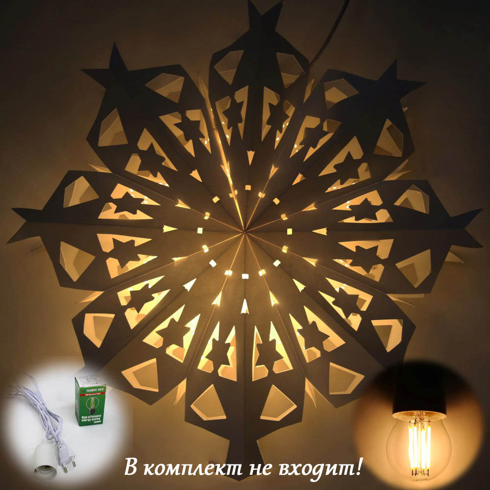 В снежинку можно установить подсветку или гирлянду со светодиодными лампами, которые представлены на фото как образец.