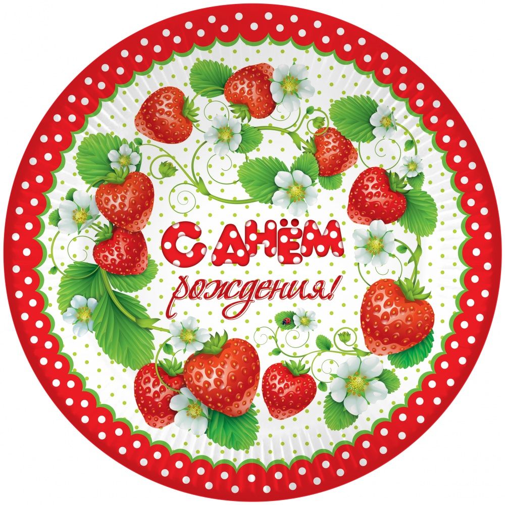 Тарелки (9''/23 см) С Днем Рождения! (клубника), 6 шт.