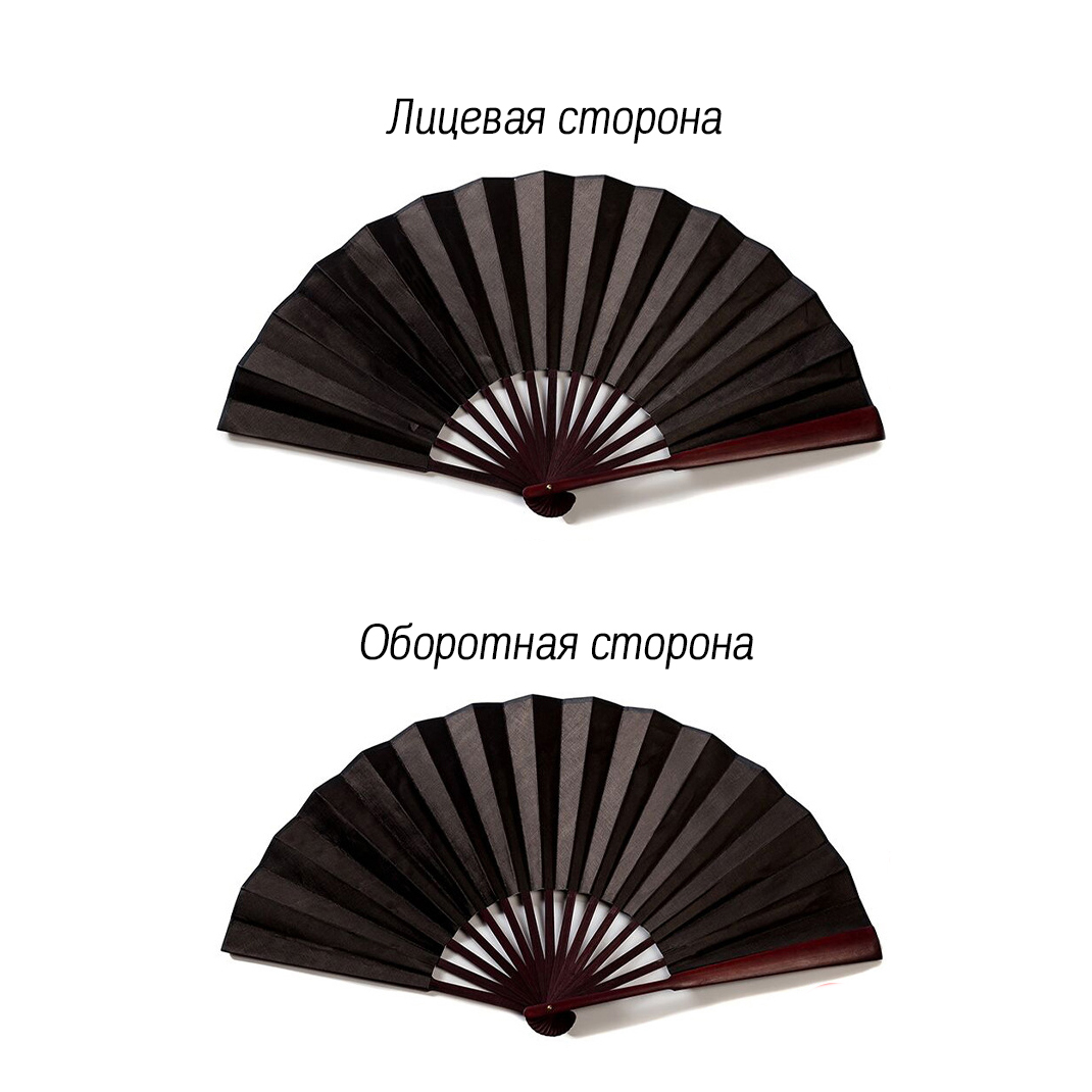 Двухсторонний складной веер для танца. Выполнен из бамбука и плотной ткани.