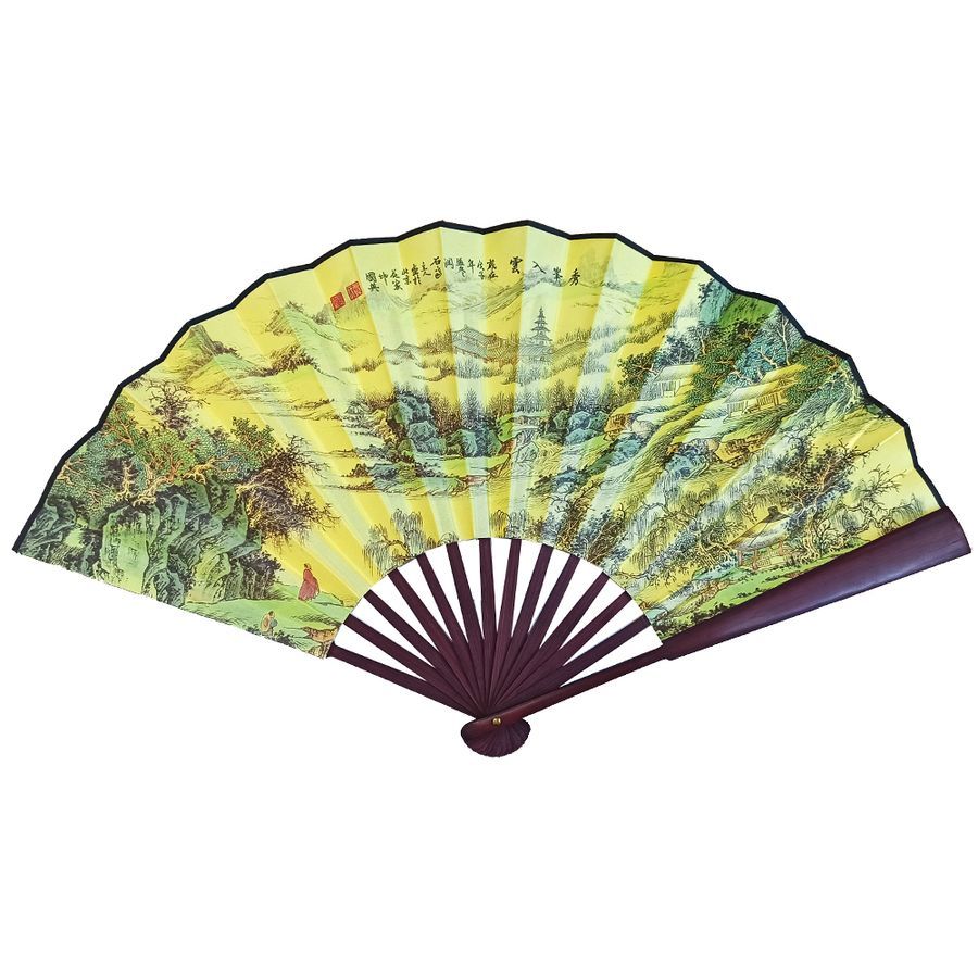 Двухсторонний складной веер для танца. Выполнен из бамбука и плотной ткани.
