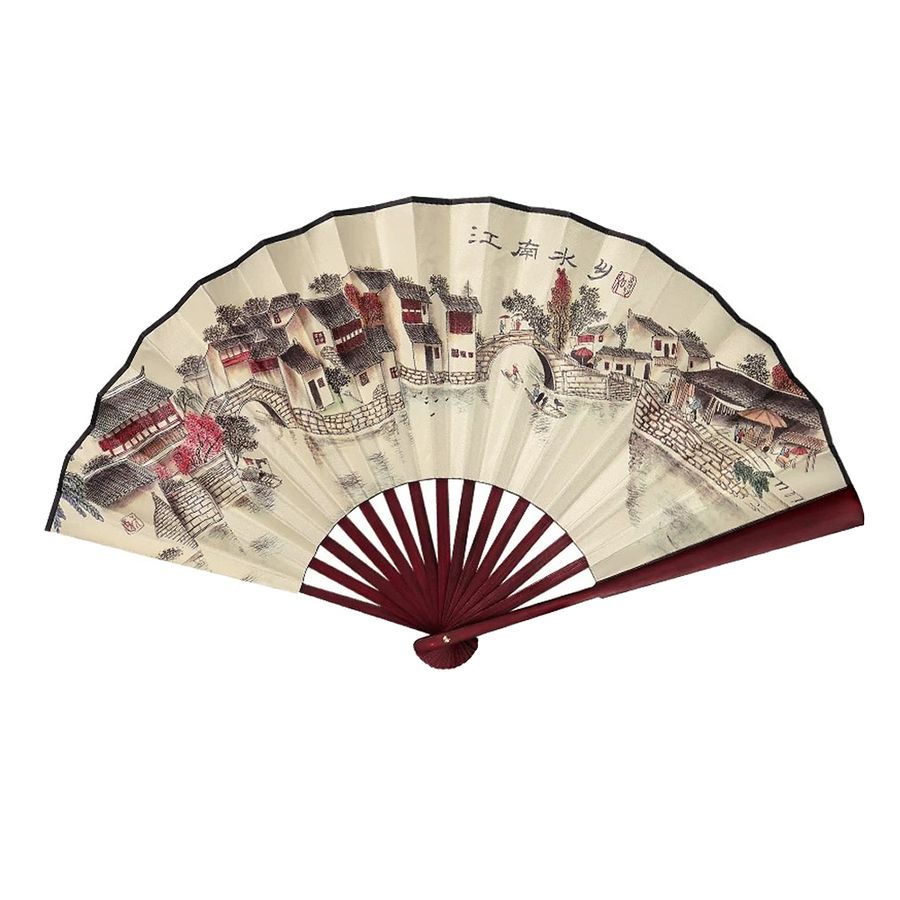 Двухсторонний складной веер для танца. Выполнен из бамбука и плотной ткани.