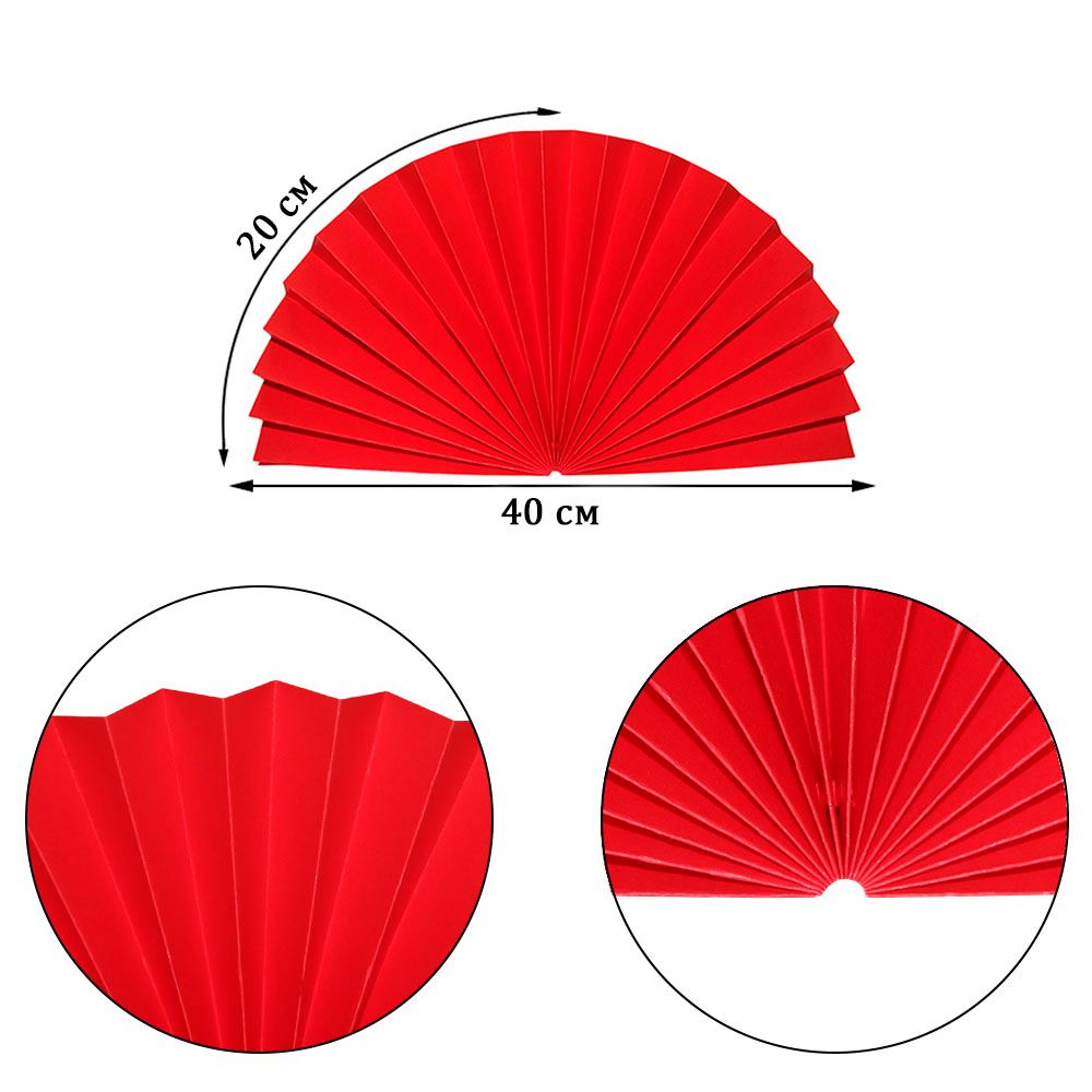Веер-гармошка 160г/м 40 см, ярко-красный
