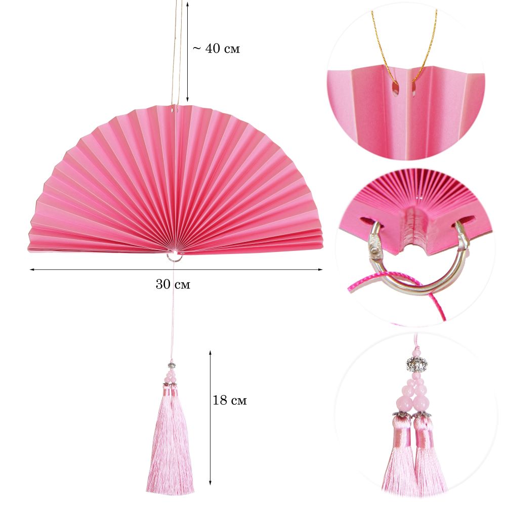 Веер-гармошка с кисточкой, 30 см, розовый — 1 шт.
