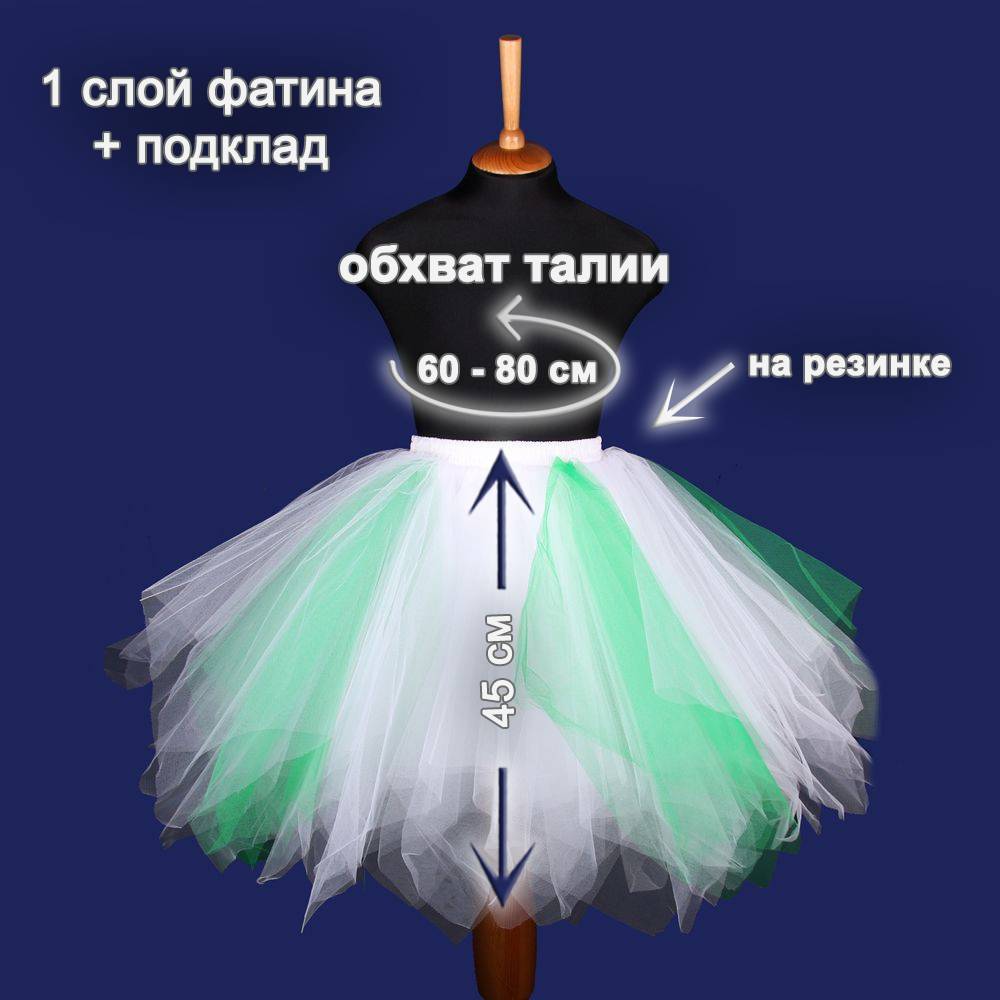 Юбка-пачка взрослая 45 см белая+зеленая №18